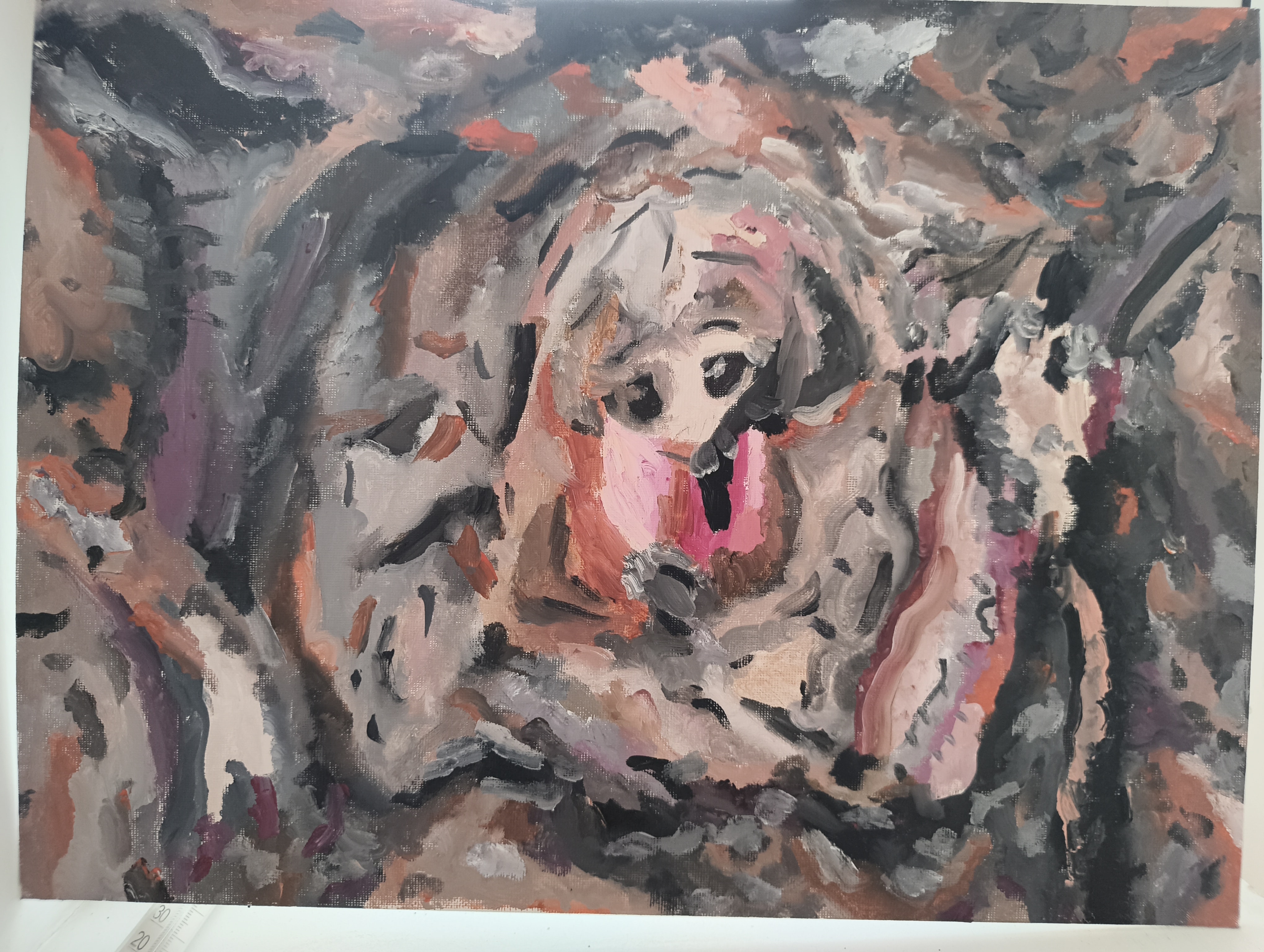 Морковка очень похожа на бибузяку. Такое же измученное выражение лица и так же следит глазками за объектами и действиями во время пыток.